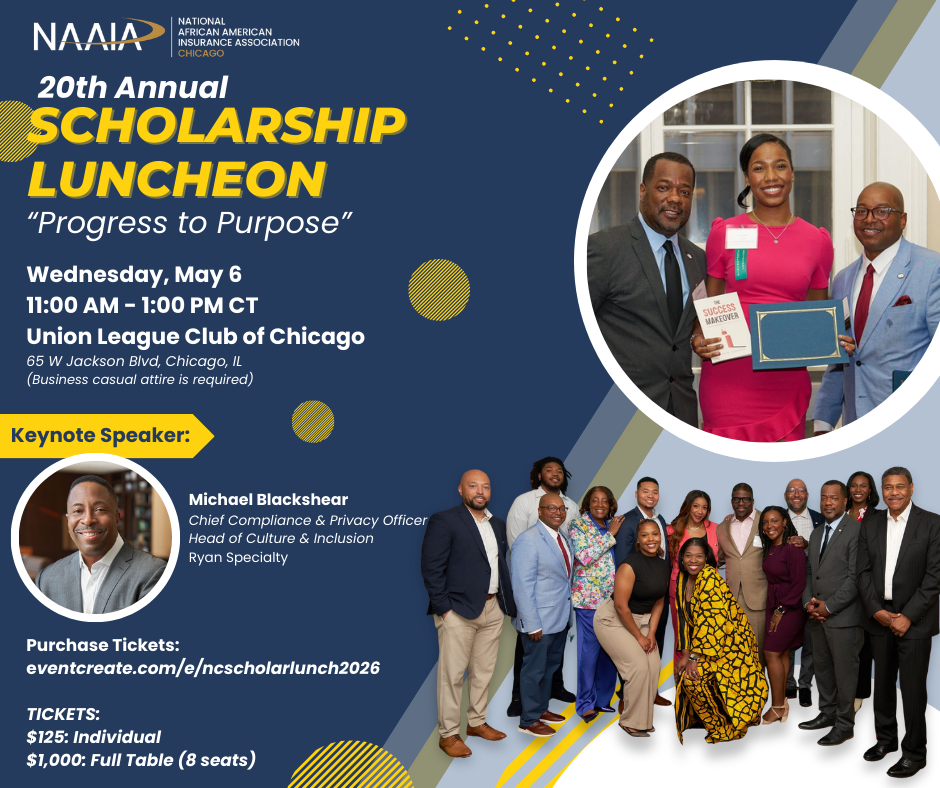 NAAIA Chicago is a local chapter of the National African American Insurance Association (NAAIA), dedicated to expanding the presence and career advancement opportunities of African American professionals across all areas of the insurance industry.